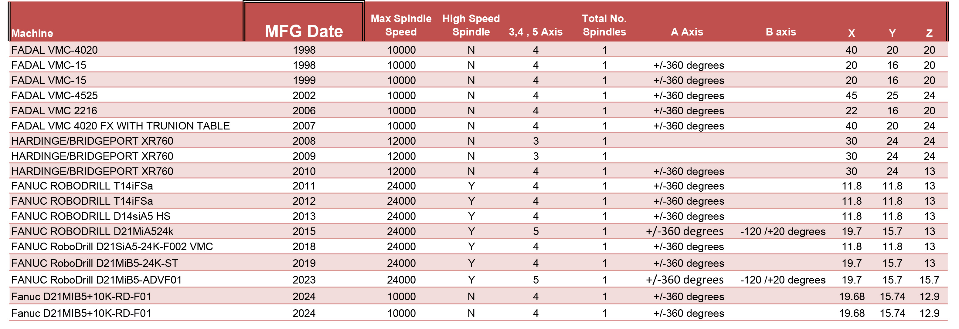 Milling Machine List